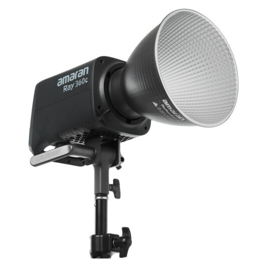 O Ray 360c da amaran é um potente monolight LED RGB de 360W com alimentação CA, ideal para criadores de estúdio, com alta precisão de cores e design IP54 integrado. Com ampla faixa de temperatura de cor (CCT) e recursos avançados, o Ray 360c é perfeito para estúdios compactos, gravações de podcasts, sets de videoclipes e outros ambientes de iluminação. Desfrute de gerenciamento intuitivo de configurações via botão FlowTurn e NFC, ou controle DMX via USB-C com um adaptador opcional. Equipado com o processador de luz OmniColor, o Ray 360c oferece brilho superior ao do amaran 300c. Escolha entre uma ampla faixa de temperatura de cor de 1800-20.000K em CCT+ com alta precisão e controle total de cores em 360° com os modos HSI e RGB. Acompanha refletor, cabo de alimentação e estojo, facilitando o armazenamento e a montagem entre gravações.