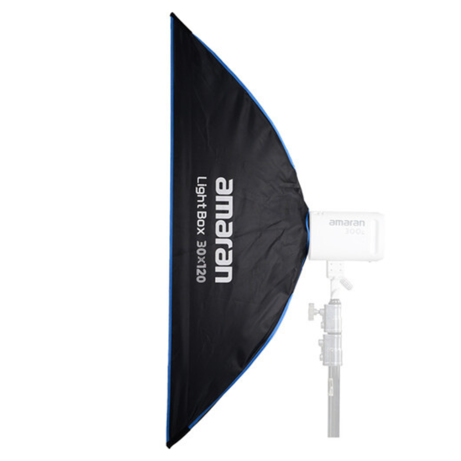 O Light Box amaran 30×120 é uma solução de iluminação rápida e eficiente, com um mecanismo de encaixe que permite montagem instantânea, ideal para fotografia de retratos e produtos. Seu design compacto e desmontável economiza espaço e facilita o armazenamento, atendendo às necessidades de fotógrafos e criadores de conteúdo que frequentemente mudam de local ou configuração. Compatível com COBs amaran e outros equipamentos com encaixe Bowens de até 600W, esta softbox proporciona uma grande superfície de iluminação com difusão uniforme, além de oferecer flexibilidade com uma grade inclusa para maior contraste e controle.