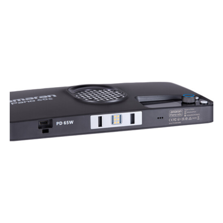 Projetado para criação em movimento, o Pano 60c é um painel de luz portátil ultrafino e compacto, com aproximadamente o tamanho de um laptop de 15″. Use este painel leve em espaços de difícil acesso, seja em gravações externas ou em estúdio, para uma opção de iluminação simples, porém poderosa. Com sua ampla faixa de temperatura de cor (CCT) de 2300 a 10.000K e ajustes de verde-magenta para produzir tons de pele precisos, o Pano 60c produz até 6290 lux a 1 metro de distância a 6500K, iluminando pequenos espaços e grandes estúdios com luz brilhante e colorida. O modo de Operação Rápida ajusta automaticamente a temperatura de cor e o brilho sem complicações adicionais e salva as configurações usadas com frequência por meio da opção de atalhos personalizados do dispositivo.