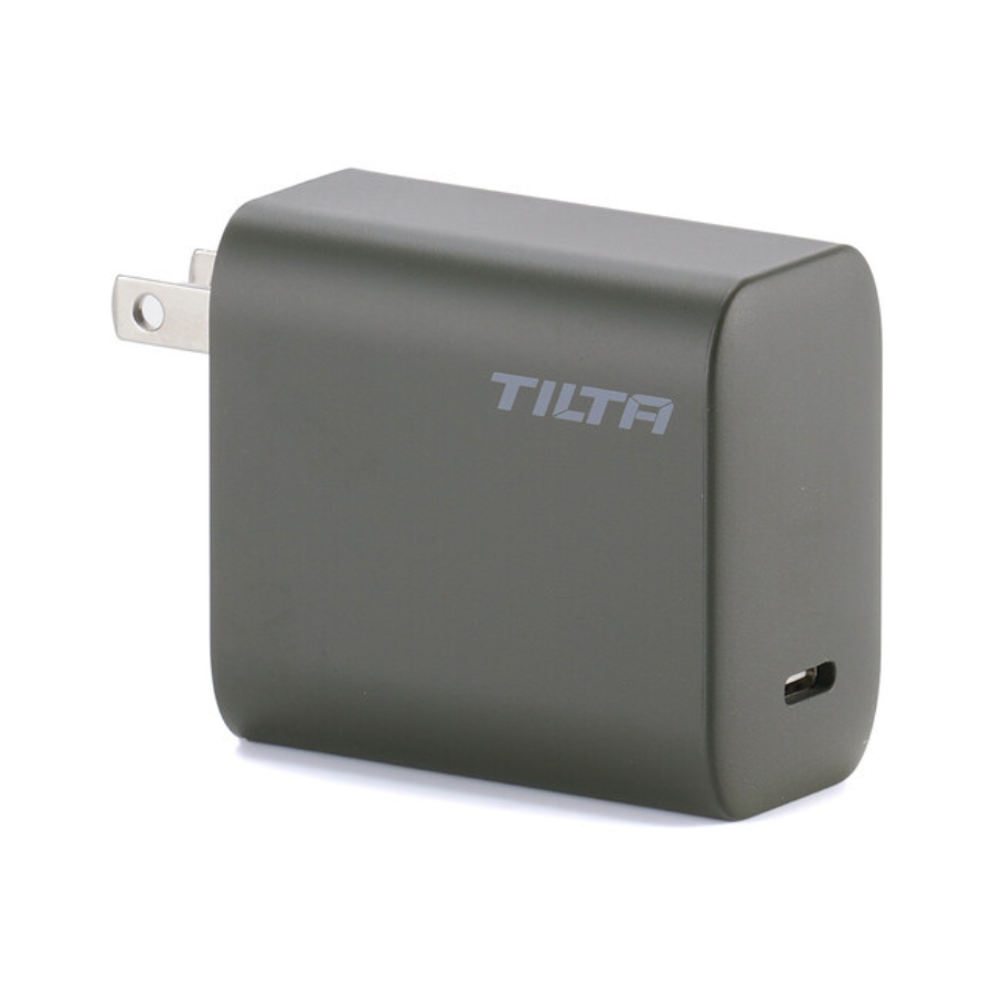 Recarregue um dispositivo móvel com o adaptador de energia USB-C de 65 W da Tilta. Com uma única porta USB-C, ele pode alimentar uma estação de carregamento portátil Tilta, além de celulares, tablets e outros aparelhos compatíveis. Com potência de até 65 W, também permite carregamento rápido de dispositivos mais exigentes, como notebooks e consoles portáteis. Basta conectar um cabo USB-C e utilizar em qualquer tomada padrão dos EUA, graças ao plugue fixo de dois pinos.