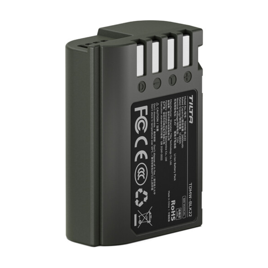 Alimente qualquer câmera compatível com baterias DMW-BLK22 usando esta bateria USB-C de 2400 mAh da Tilta. A entrada USB-C permite recarregar a bateria mesmo sem um carregador dedicado, oferecendo mais praticidade no dia a dia. Ela garante até 114 minutos de gravação de vídeo ou aproximadamente 383 fotos, recarrega em cerca de 2h45 e é totalmente decodificada, permitindo comunicação completa com a câmera e evitando mensagens de erro desnecessárias.